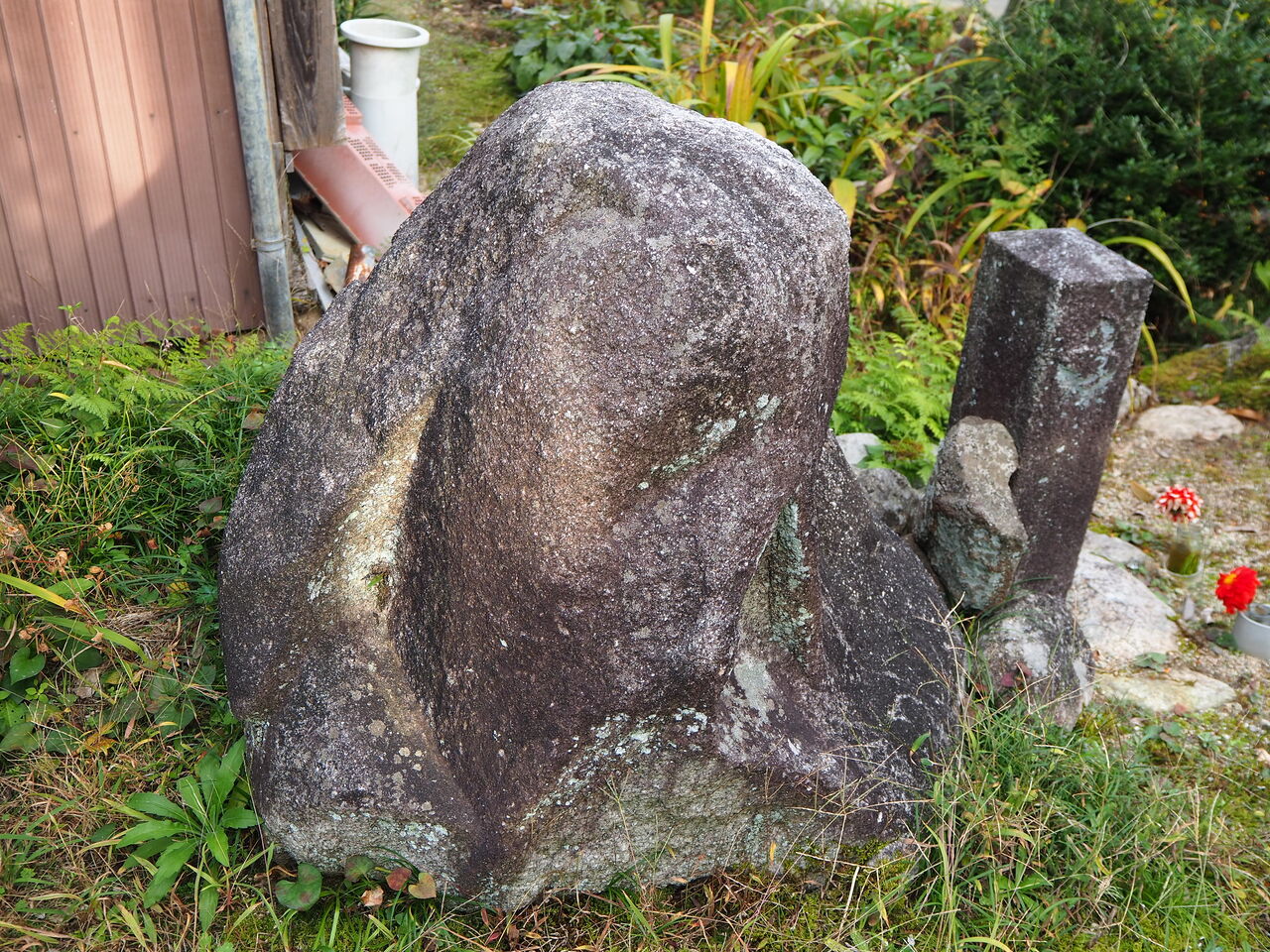 通常、神社の狛犬は向かい合った形で座っていますが、大送神社本殿前の狛犬はどちらも正面を向いています。
